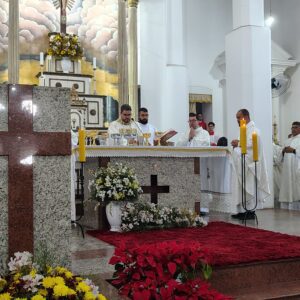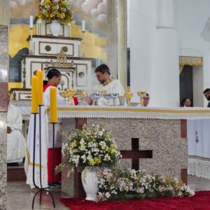 Recebida a Cruz que acompanhava o cortejo, a Eucaristia seguiu como de costume, sob a presidência do Vigário Geral, Pe. Johnny Silva Borges, que por motivos de saúde foi delegado pelo bispo para presidir a celebração. Durante a homilia, o padre reforçou que o Ano Santo de 2025 deve ser “o ano do perdão, da misericórdia, da paz, da justiça e da reconciliação entre as nações, entre os povos e entre as famílias”.