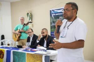 Roberto Malvezzi (Gogó), militante da ecologia social e membro da CPT, também relembrou os conflitos relacionados à água e destacou a importância das cisternas no semiárido brasileiro como solução eficaz. Ele reforçou que os povos indígenas, quilombolas e ribeirinhos são os guardiões da biodiversidade e merecem apoio na defesa de seus territórios. Além disso, enfatizou que a atenção às comunidades e povos tradicionais deve ir além da Amazônia, abrangendo também os diversos grupos presentes nas demais regiões, incluindo as que estão no território da Diocese de Bonfim, que enfrentam desafios igualmente urgentes e necessitam de ações efetivas para garantir sua preservação e dignidade.