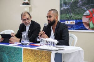 Um dos pontos altos foi a apresentação do engenheiro ambiental Luciano da Silva Alves, que trouxe dados sobre a preservação de recursos hídricos e os desafios enfrentados por comunidades tradicionais. Ele apontou problemas como a ausência de registros oficiais em áreas sensíveis, que facilitaram invasões e degradação de recursos hídricos, como observado na comunidade de Mucambo, onde foram identificadas alterações na qualidade da água. A degradação ambiental, especialmente nas áreas de mineração, foi apontada como um problema urgente que requer ações coletivas e interligadas.
