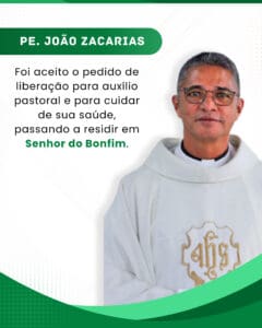 – Do Pe. João da Silva Zacarias, foi aceito o pedido de liberação para auxílio pastoral e um tempo de maiores cuidados com a saúde, passando a residir em Senhor do Bonfim;